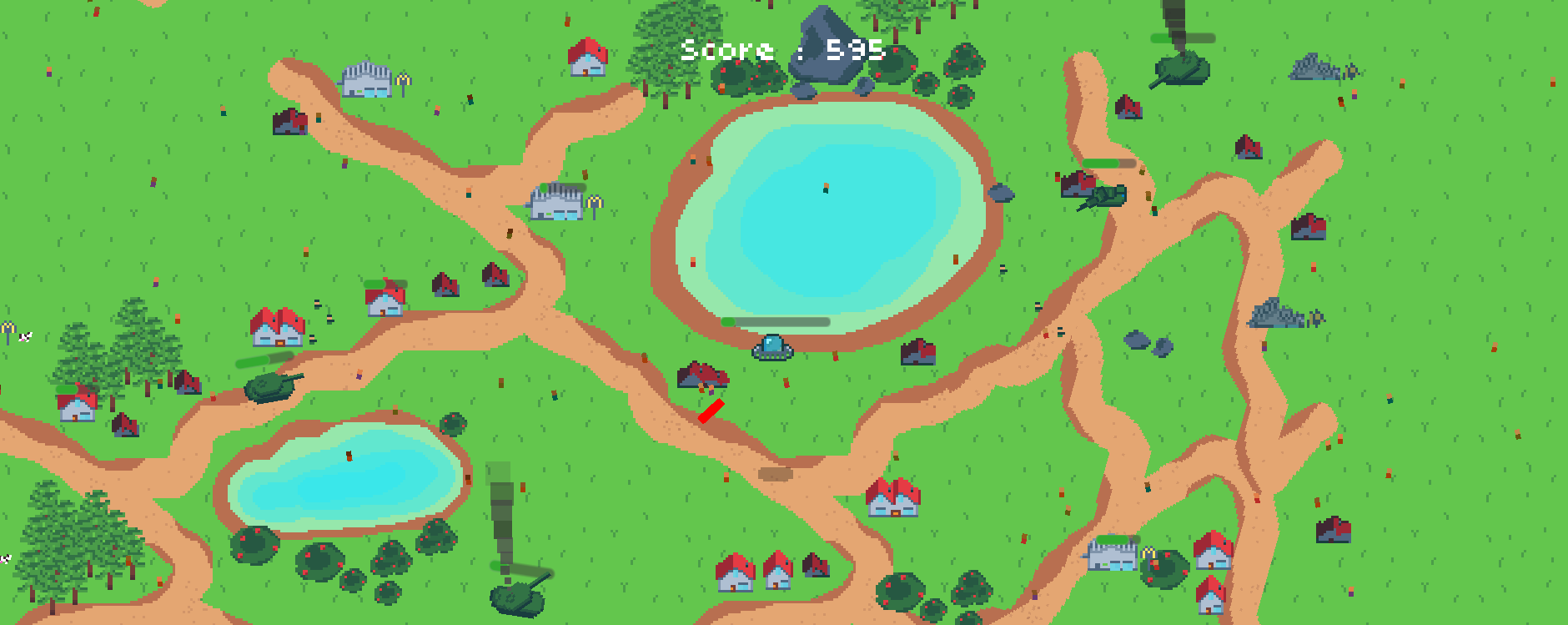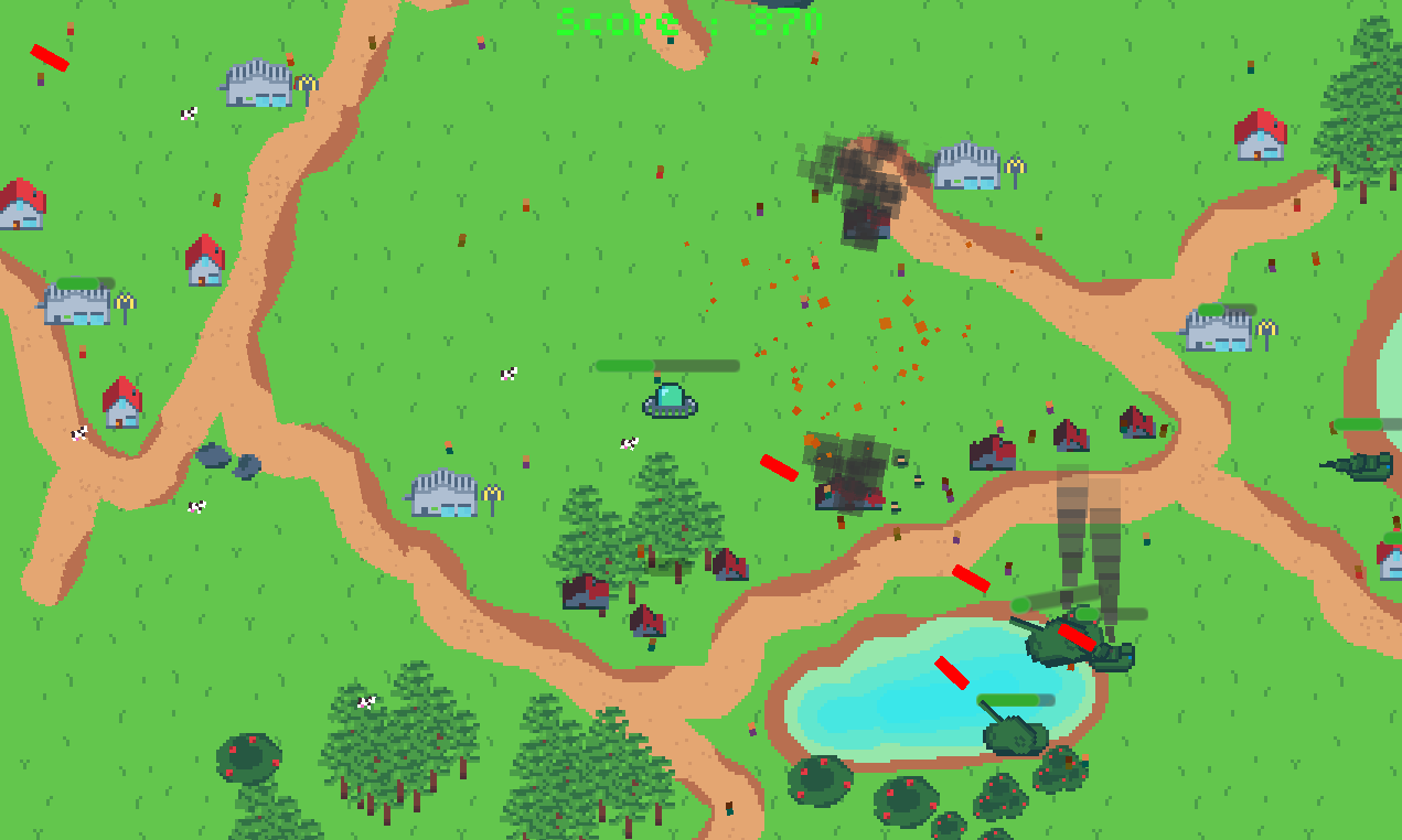 You are from the planet Flobion, you don't know why but you have the urge to abduct and destroy this helpless town of Greenton... but their puny human army has intervened to try and stop you!